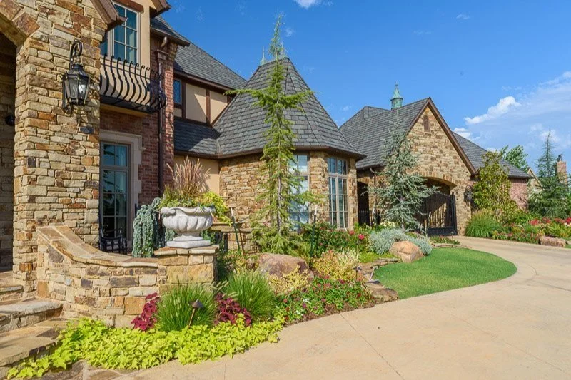 Complete new home landscape installation. Work included trees, plants, stone, and landscape lighting.